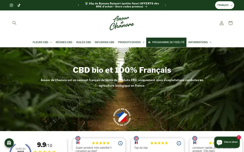 - Amour de Chanvre — Boutique en ligne dédiée aux fleurs et résines de CBD de qualité.