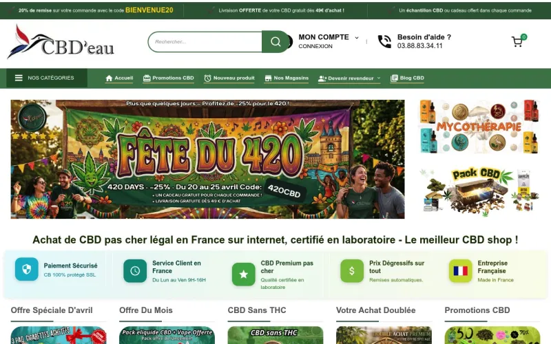 - CBD'eau — Une offre diversifiée de fleurs et produits CBD pour tous les besoins.